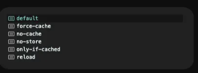 default: 기본적인 브라우저 캐싱 규칙을 따름. 브라우저가 요청과 응답을 캐싱하는 방식을 자동으로 처리함.