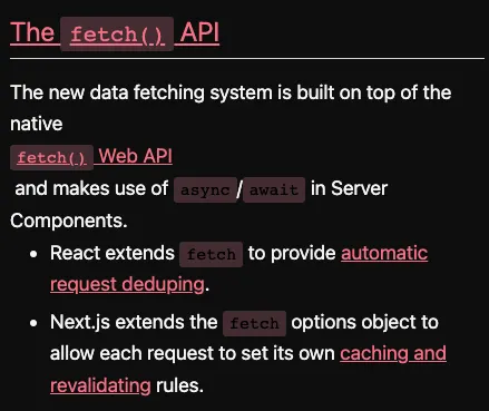 React 18 버전에서 서버 컴포넌트에서도 fetch를 사용할 수 있도록 구현해둠.