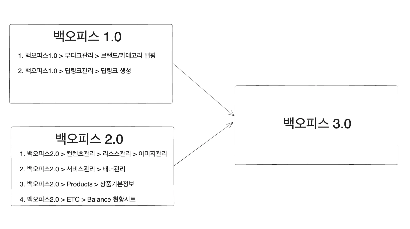projects  | v1.0, v2.0 백오피스 → v3.0 백오피스 통합 프로젝트  |