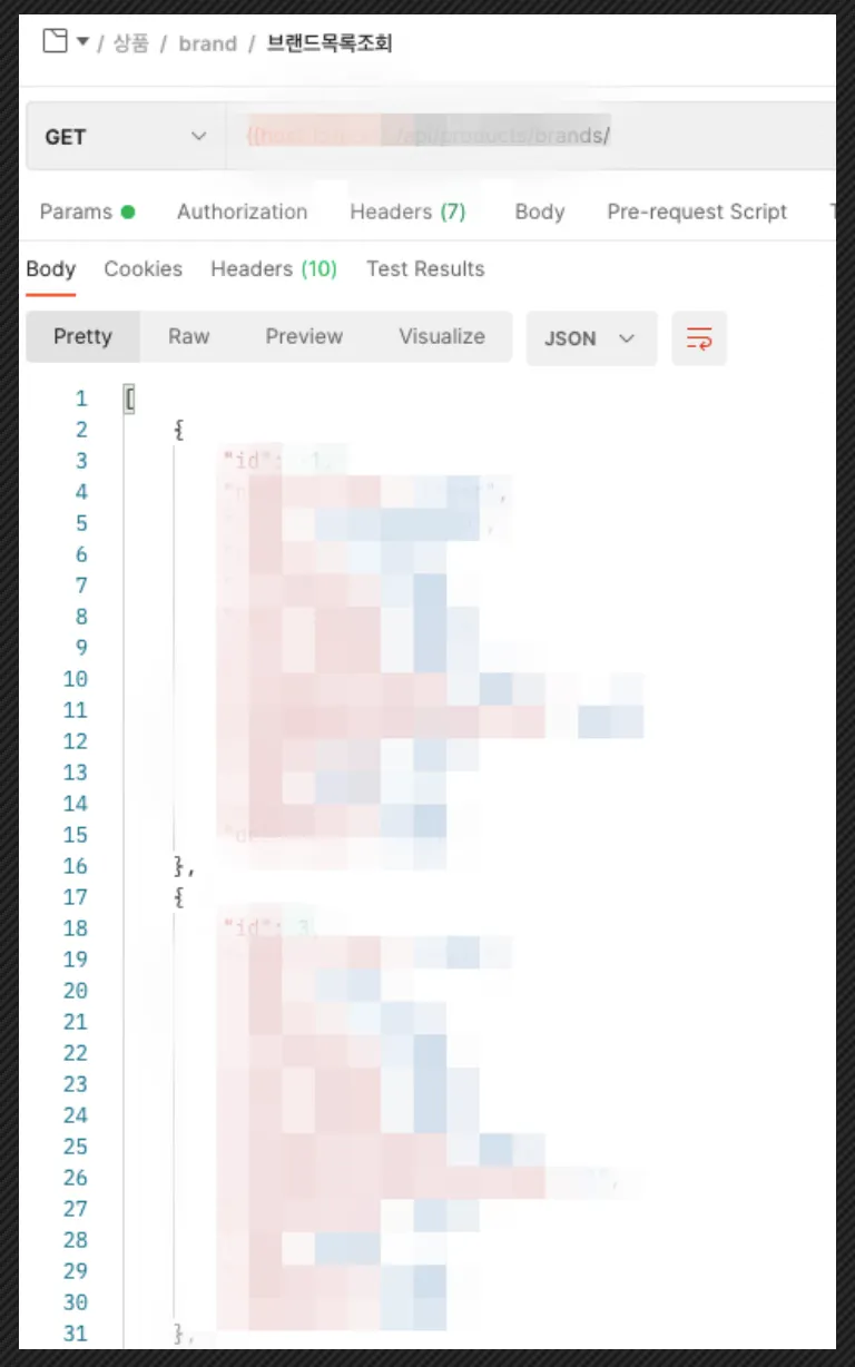 이는 이번에 제가 브랜드 작업을 하고난 후 다음 작업자가 브랜드목록에 대한 기능을 추가하셨는데 테스트코드가 수정되어야함을 확인하였습니다.