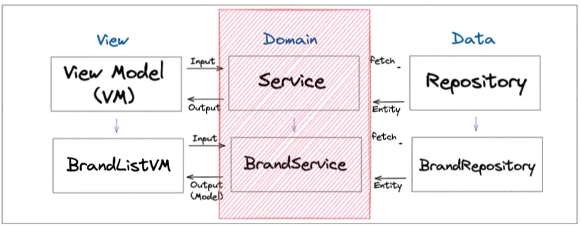 디코드 아키텍쳐 기반에서는 크게 영역을 3개로 나누었습니다. View(Application) 영역, Domain 영역, Data 영역 입니다.