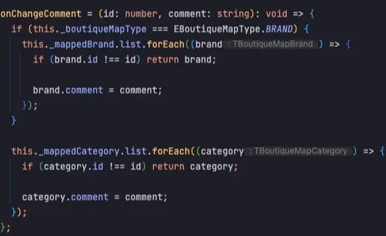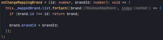 그러면 구현부를 VM에서 onChangeMappingBrand 메서드의 구현부를 확인해봅시다.