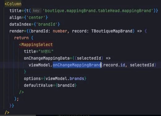 그리고, onChangeMappingBrand 함수를 호출합니다.
