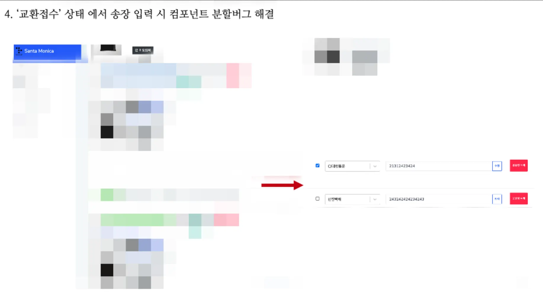 교환/반품주문에 대해 송장정보를 분리하여 입력할 수 없음