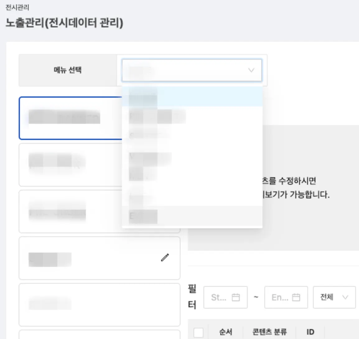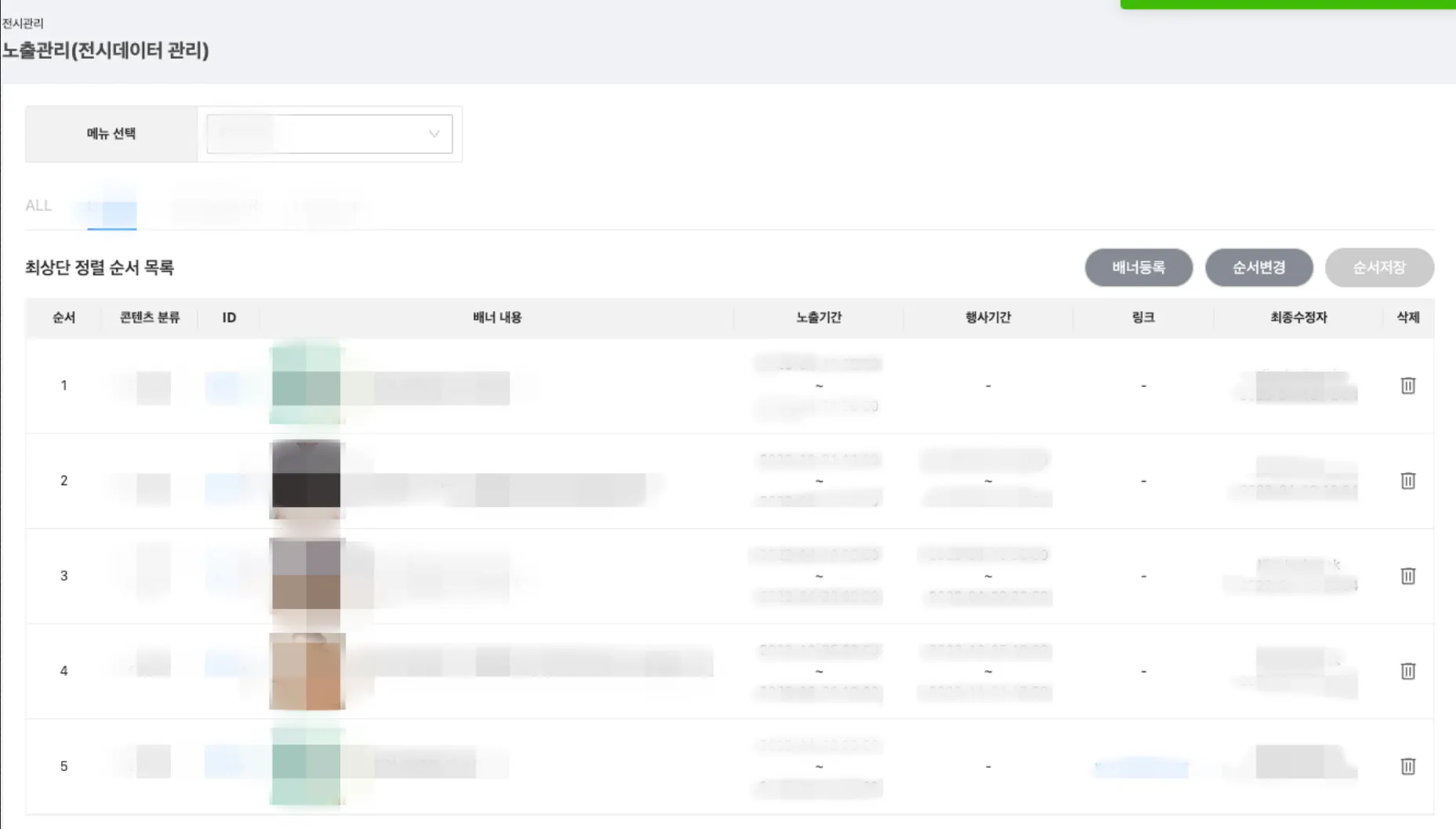 노출관리(전시데이터) 페이지를 어드민영역에 신설