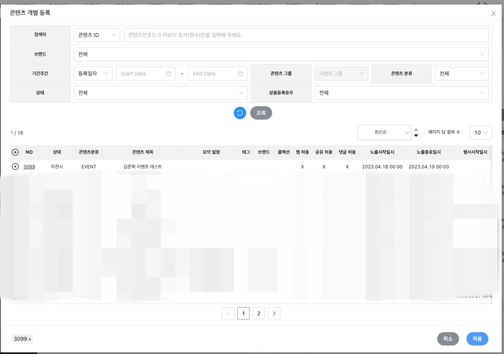 전시 관리에서 사용하는 공통 컴포넌트 개발 : 컨텐츠 등록 팝업, 컨텐츠 내용 View, 노출 View